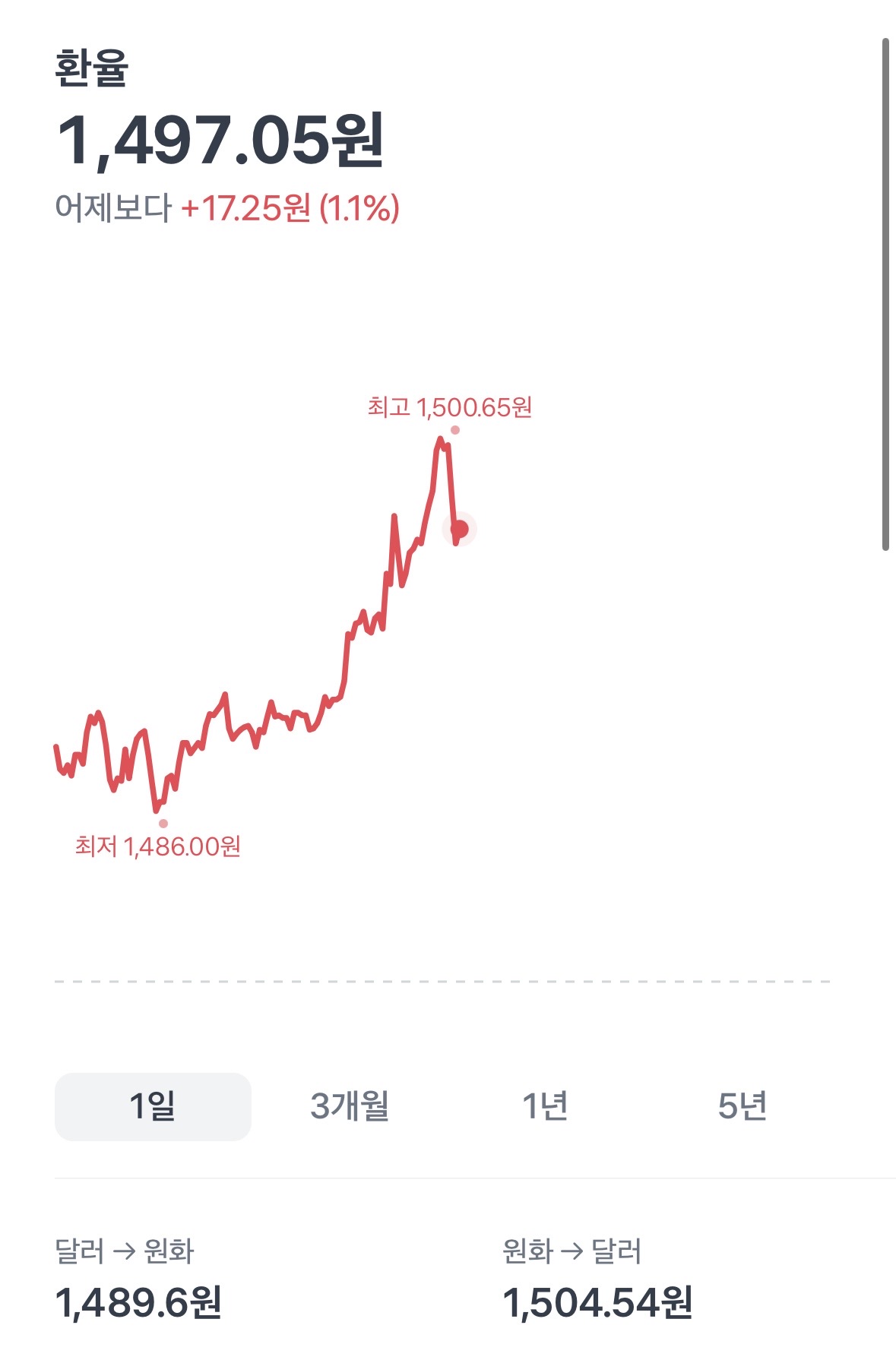 26년 3/13일 달러가 1500을 돌파했습니다.. 후덜덜.